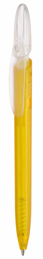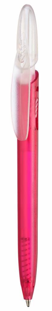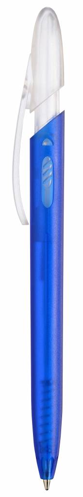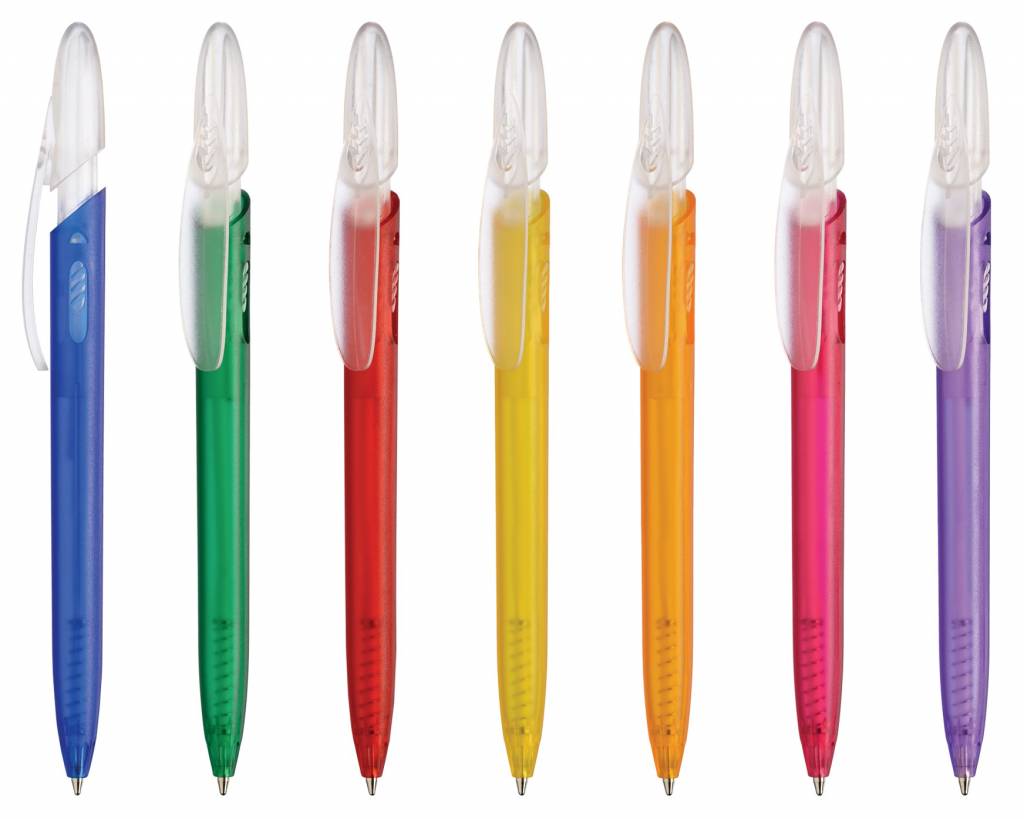 Die Druck-Mechanik von RICO BRIGHT schnappt ein und wird mit einem Druck auf dem seitlichen Release vom Clip wieder gelöst. Der Kugelschreiber hat einen farbigen transparenten Schaft und einen transparenten Clip.