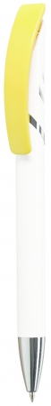 Der Druckkugelschreiber STARCO WHITE ist einer unserer Bestseller, mit einem weißen soliden Schaft, einem farbigen Clip und seiner verchromten Spitze.
