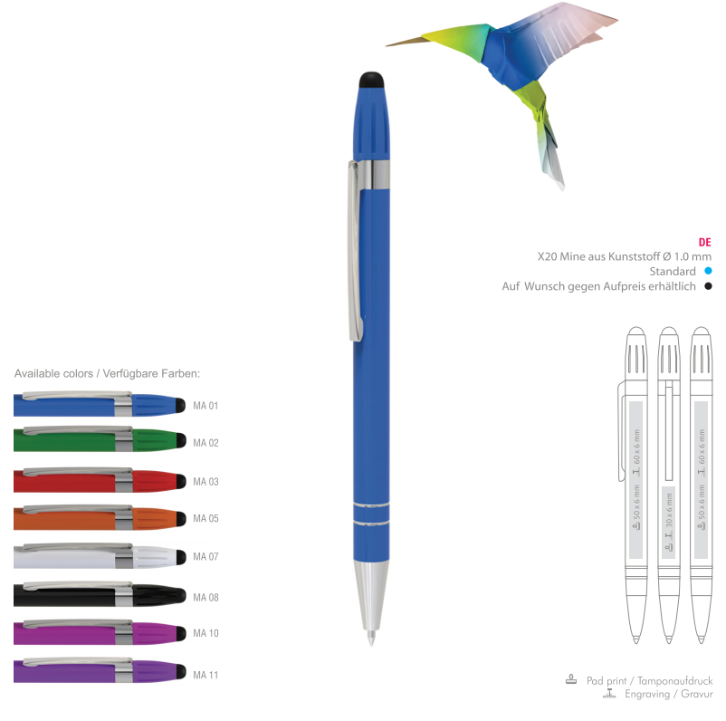 - Gravur kann auf dem Schaft des Stiftes erfolgen
